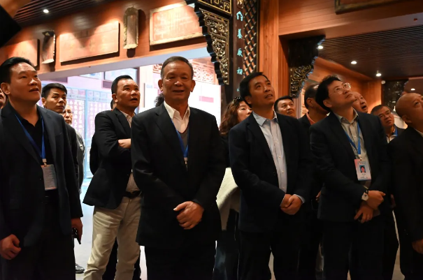 施能狮团长发表讲话,对泰宁县委县政府的重视和用心安排表示感谢,他指出:明清产业文化园展示了泰宁历史上产业发展的清晰脉络,非遗博览苑,又呈现出一座活态的文化宝库,尚书第,印刻着历史的记忆,传递着传统的价值观念。希望考察团成员用心感受、用智谋划、用力推动,让这次考察成为在深闽商与泰宁的一次凝聚共识、开启合作的机遇,贡献在深闽商的智慧和力量。