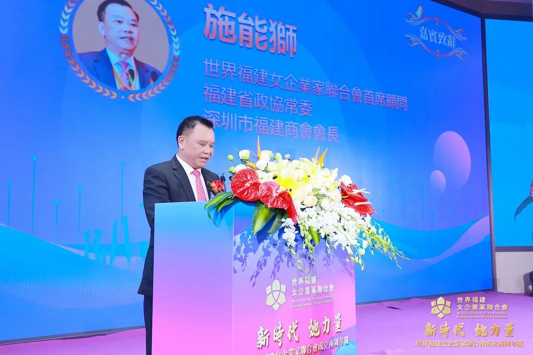福建省政协常委、深圳市福建商会会长、联会首席顾问施能狮致辞施能狮强调,妇女是推动国家发展和社会进步的重要力量,她们在各行各业奋斗奉献,在家庭生活中也扮演重要角色。他希望,世界福建女企业家联合会、深圳市福建商会妇委会、妇委会能凝聚闽籍巾帼之力、汇集闽籍巾帼之智,向着强国建设、民族复兴的宏伟目标踔厉奋发、勇毅前行!