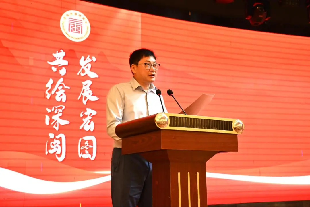 福建省人民政府驻深圳办事处副主任汪刚强讲话:对候任团队的再次当选表示祝贺,同时对第七届领导团队带领下,商会开展的工作和取得成绩给予肯定,对领导团队的高立场高站位表示赞扬,并向在深闽商传达福建省关于凝聚闽商力量,同心协力,奋勇争先谋发展的指示。