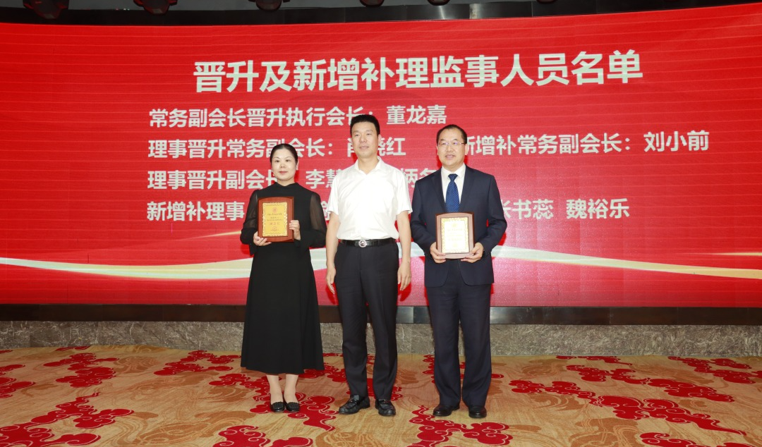 会议审议通过了第七届晋升、新增补理监事的报告,授牌通过:原常务副会长董龙嘉晋升执行会长;原理事肖晓红晋升常务副会长;新增补常务副会长:刘小前;原理事晋升副会长李慧芳、俞炳冬;新增补理事:王少榆、魏秀萍、曾惠玲、张书蕊、魏裕乐。