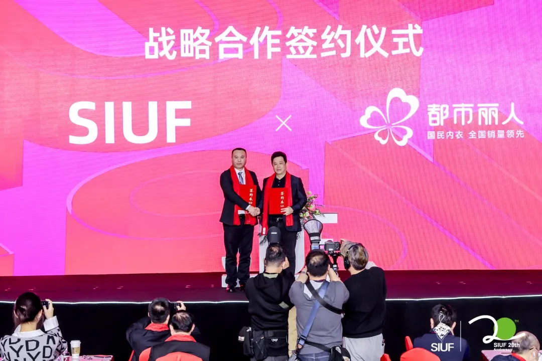 SIUF中国国际品牌内衣展与国民内衣都市丽人现场签署战略合作协议,标志着双方将携手并进,共同探索贴身服饰行业的新机遇,扩大中国内衣的全球影响力。