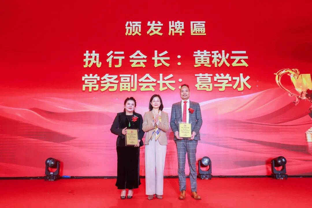 深圳市委统战部副部长、市工商联党组书记刘俊琳为新增执行会长黄秋云、常务副会长葛学水颁牌