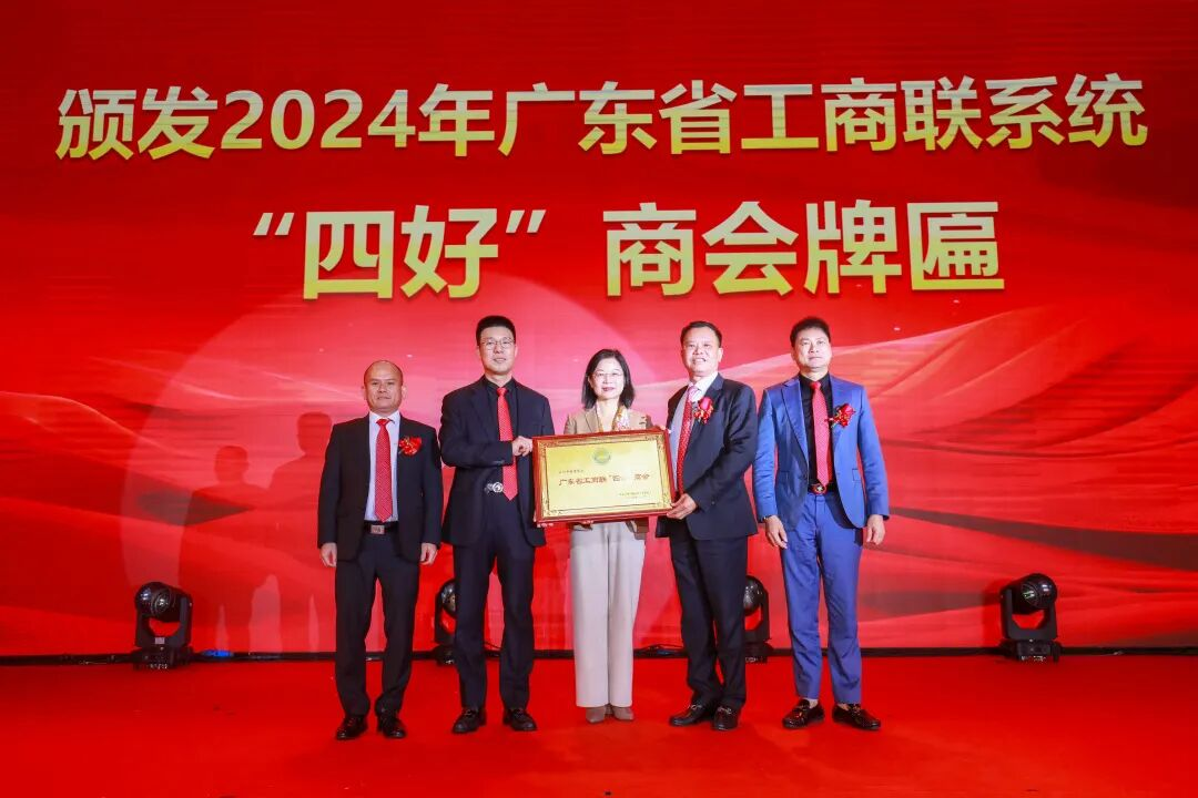 深圳市委统战部副部长、市工商联党组书记刘俊琳颁发广东省工商联系统“四好”商会牌匾。