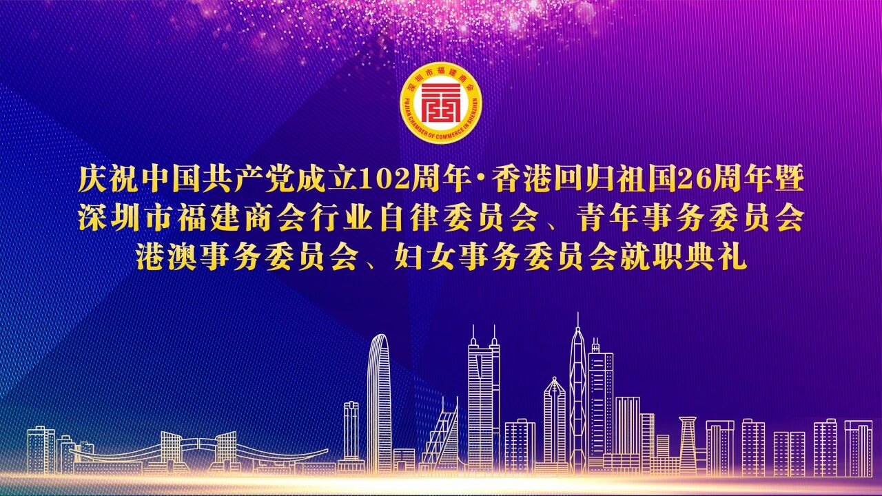 7 月 2 日,深圳市福建商会在横岗君逸酒店隆重举行“庆祝中国共产党成立 102 周年﹒香港回归祖国 26 周年暨深圳市福建商会行业自律委员会、青年事务委员会、港澳事务委员会、妇女事务委员
